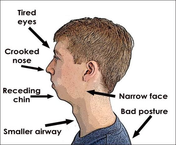 - mouth breathing and tongue out and forward during breathing