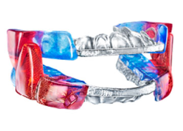 Respire Blue+ is a custom mouthpiece that features a dual block design with interlocking wings. It works by keeping the airway open in any sleep position and allows for a wide range of mouth movement. The new Respire Blue+ has a 4 wings design with 2 adjustable and 2 fixed wings. This appliance is not recommended for those with heavy grinding habits.